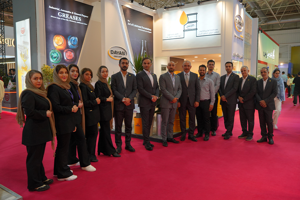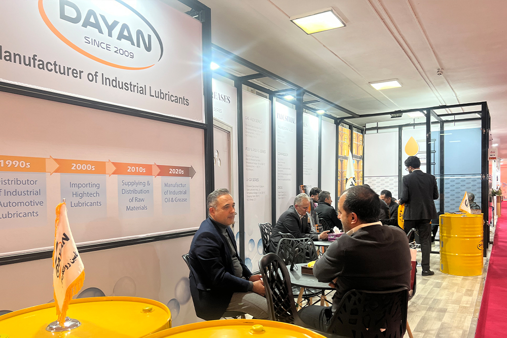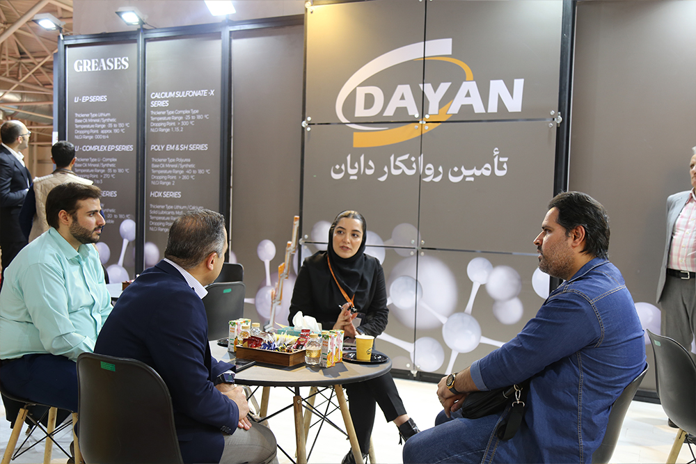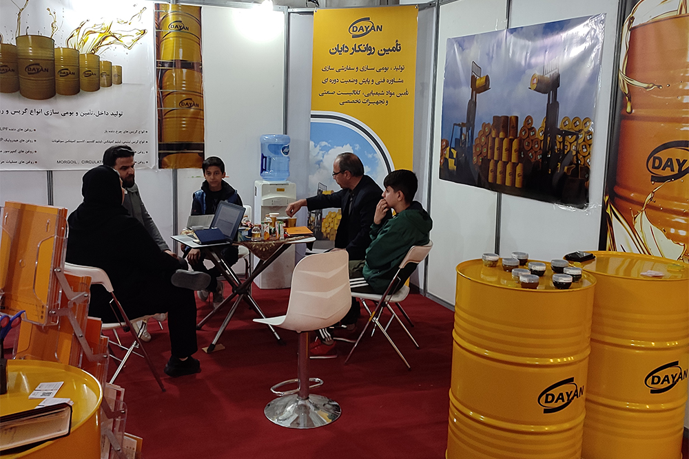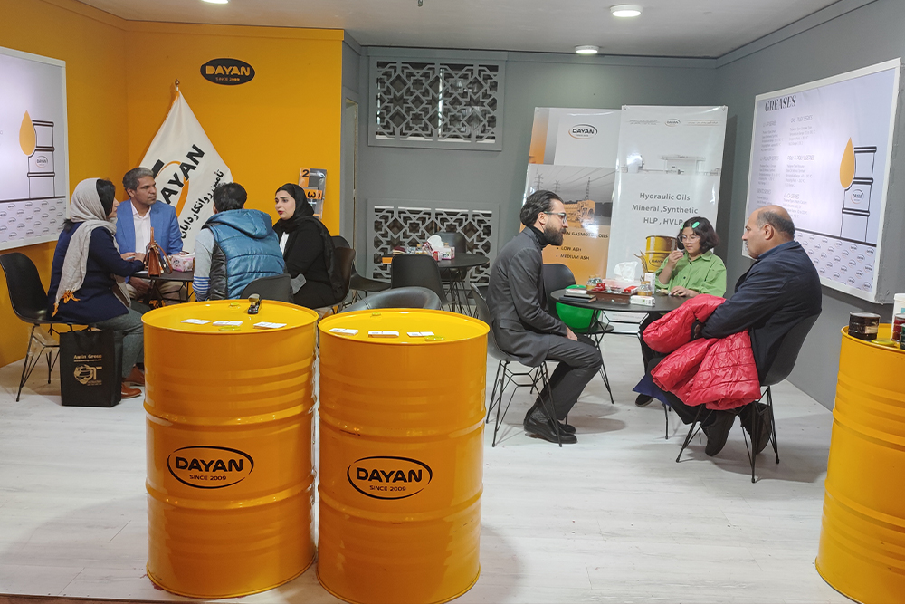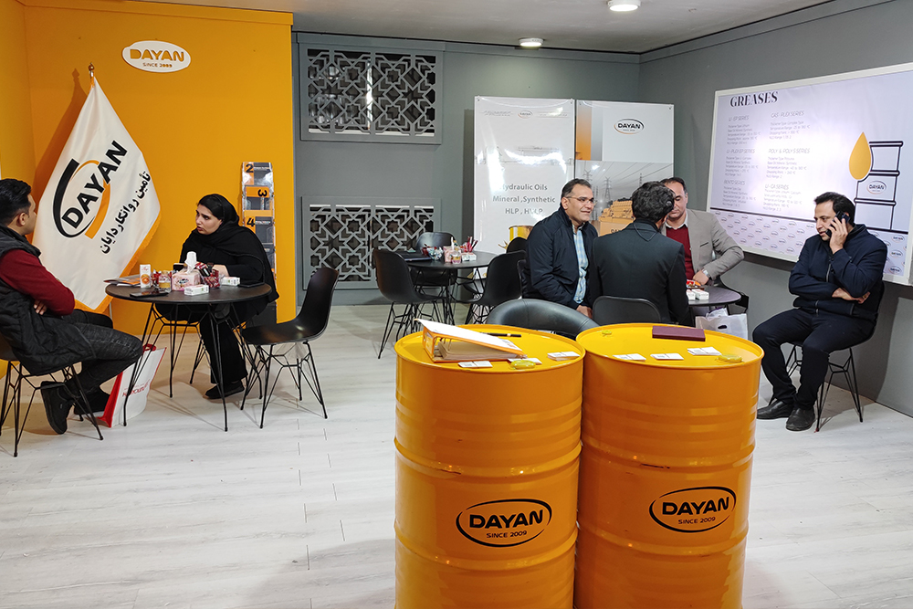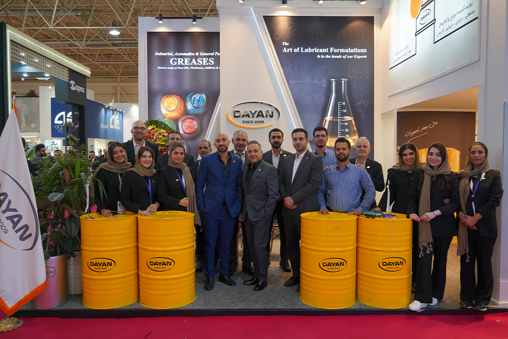 Dayan-Gruppe produziert seit mehr als drei Jahrzehnten in der iranischen Schmierstoffindustrie. Sie stellt über 700 verschiedene Produkte her, darunter Arten von Schmierfetten und Industrieölen, auf einer Fläche von 20.000 m², und liefert diese direkt an die Arbeitgeber der iranischen Industrie.