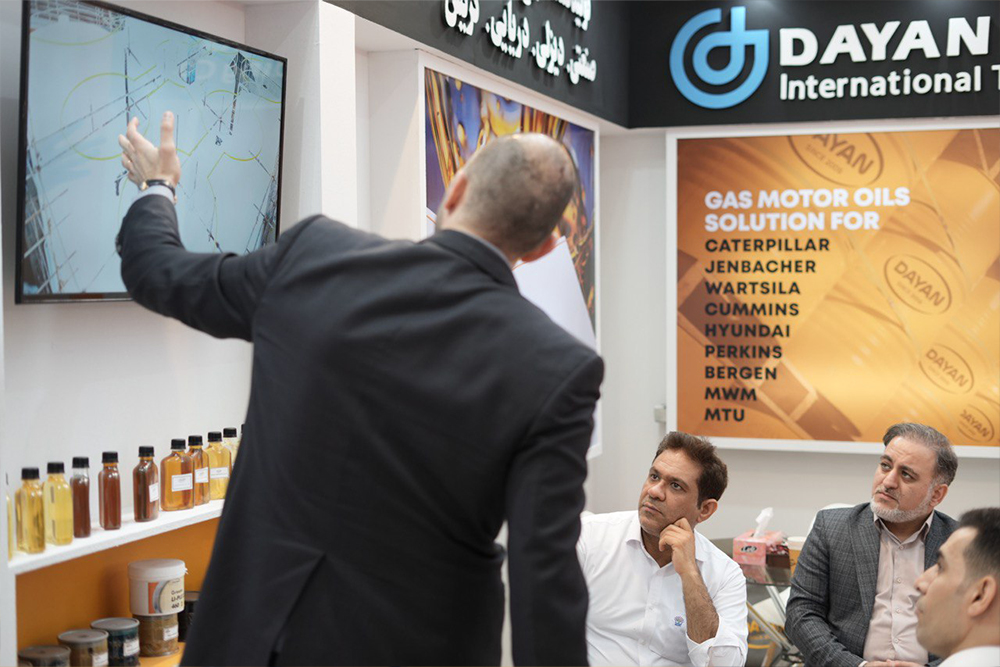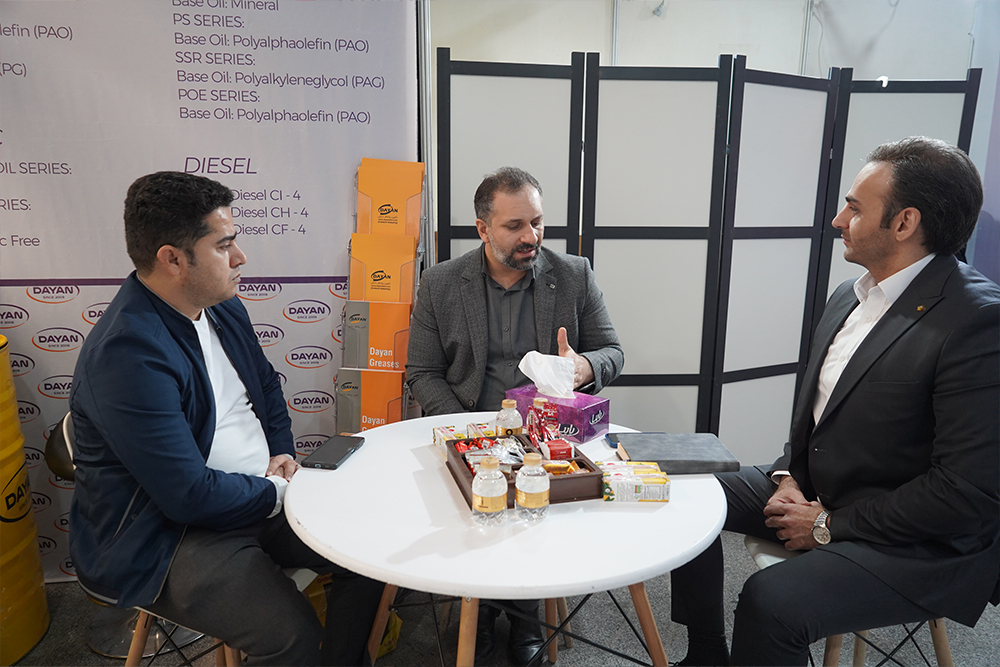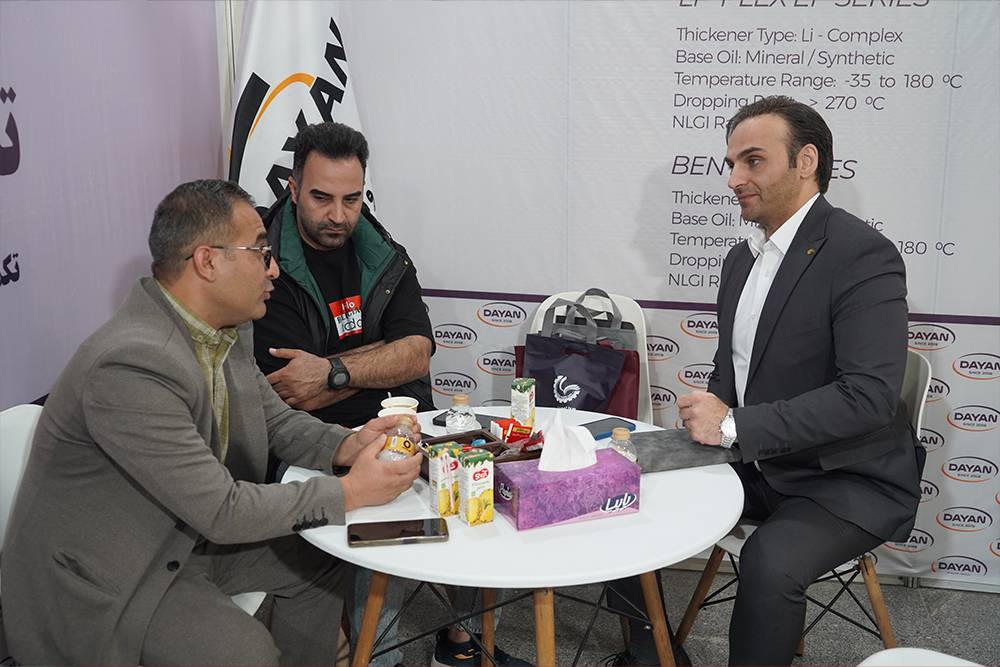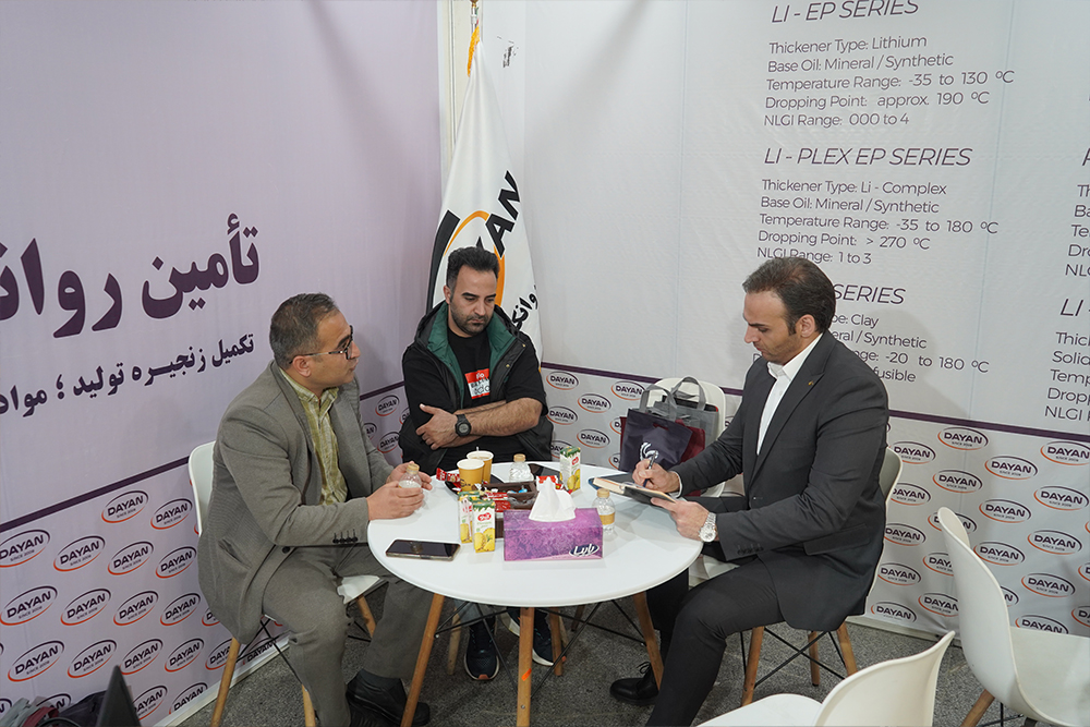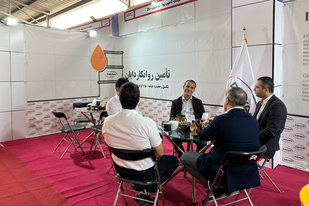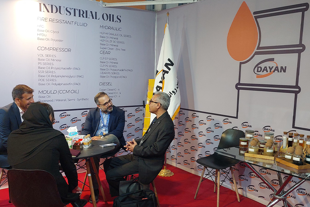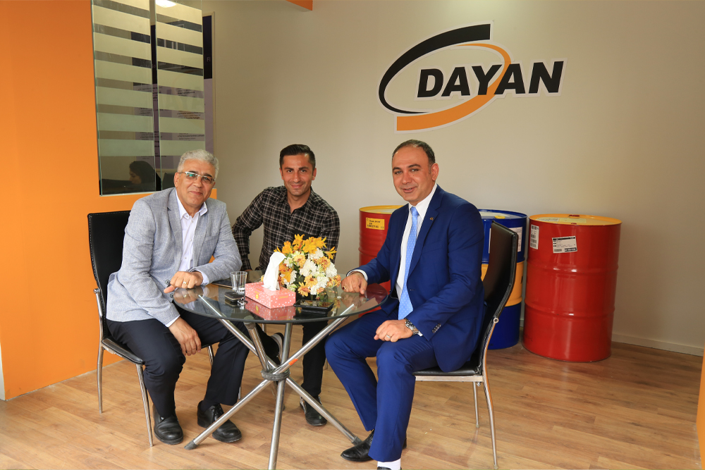 Dayan-Gruppe produziert seit mehr als drei Jahrzehnten in der iranischen Schmierstoffindustrie. Sie stellt über 700 verschiedene Produkte her, darunter Arten von Schmierfetten und Industrieölen, auf einer Fläche von 20.000 m², und liefert diese direkt an die Arbeitgeber der iranischen Industrie.